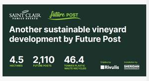 Saint Clair GM of Winegrowing Jarrah Prior and the viticulture team are actively replacing wooden vineyard posts with ‘Future Posts’ around Marlborough. Standard treated wooden posts only have a lifespan of 10 years and contain harsh chemicals that negatively impact the environment. These recycled Future Posts create a positive difference to our environment by reducing waste and the use of harmful chemicals. The recycled plastic that goes into Future Posts originates from wineries all over New Zealand, Saint Clair included. Plastic waste from the winery such as soft plastics, liners and barrel wrap is all sent to Re Plast for recycling into Future Posts.
